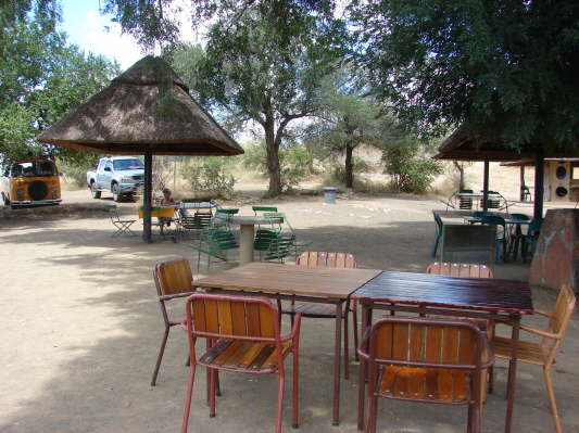 Ein Picknickplatz im Kruger Park. Zwar ohne Zaun, aber bewacht, schon allein, damit die Elefanten nicht an die Gasgrills gehen (hängen hinten rechts an der Hütte).