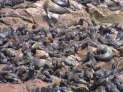 Am Cape Cross wollen wir uns noch einmal die Robbenkolonie anschauen. Wobei anschauen nur bedingt zutrifft, anhören und anriechen wäre richtiger. Die vielen tausend Tiere machen einen Höllenlärm und einen furchtbaren Gestank; es soll die größte Brutkolonie der Welt sein. Zur Zeit sieht man überall Kleine, die nach ihrer Mama schreien. Ein riesiges Durcheinander.